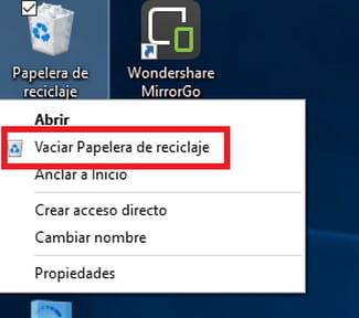 Luego de terminado el proceso anterior, haz clic derecho en el icono de la Papelera de reciclaje ubicado en tu escritorio y selecciona Vaciar Papelera de reciclaje: