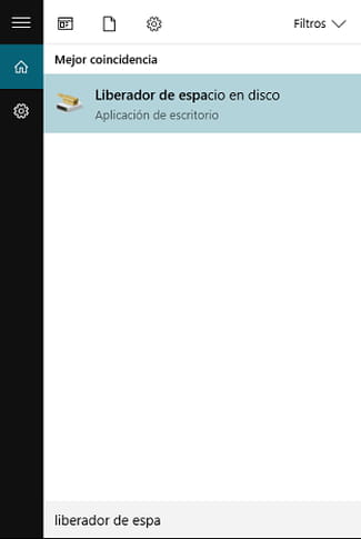 Para eliminar archivos temporales en Windows 10, escribe en la barra de búsqueda Liberador de espacio en disco y selecciónalo de la lista de resultados: